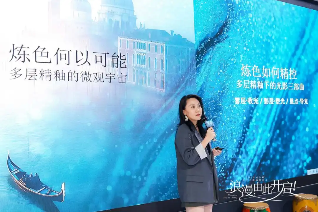 威尔斯陶瓷产品总监栾辉则从产品研发者的视角,揭示了从灵感到实体的创造性转化。她阐明,威尔斯以技术为“当代转译者”,将地质史诗与窑火温度精准编码为“石光三韵”的质感语言,完成了文化精神向情感体验的终极抵达。