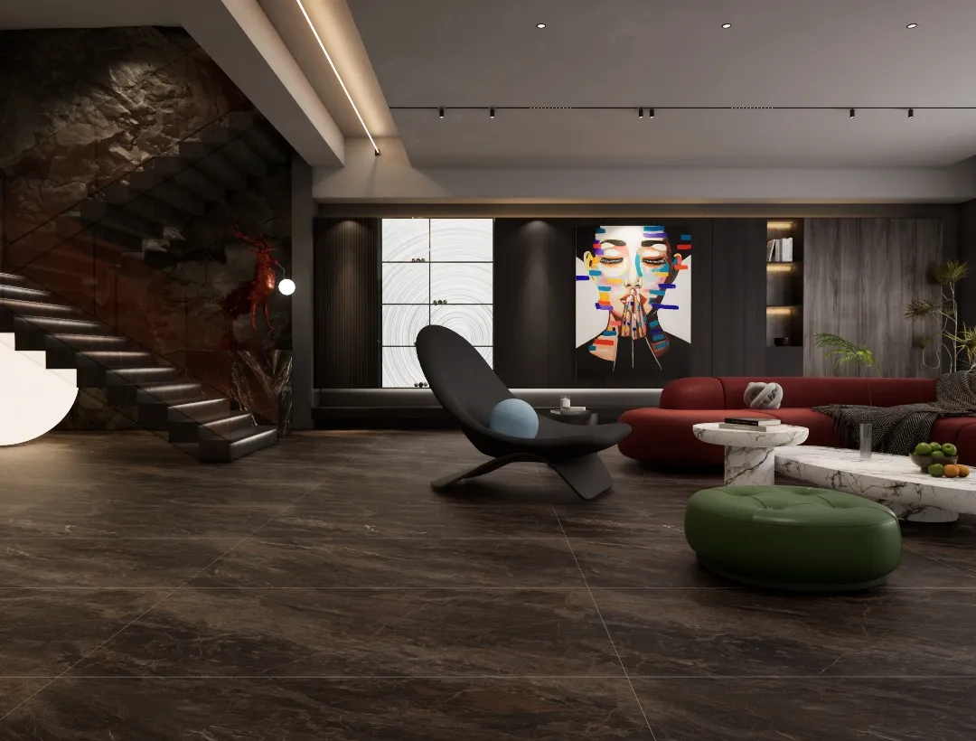“石光·炼色”以水与火为经纬,通过雾面沉淀、微影层叠与星点亮泽的三重炼制,在砖面中凝结出富有深度与温度的色阶,回应现代空间对生命性色彩的内在渴望。