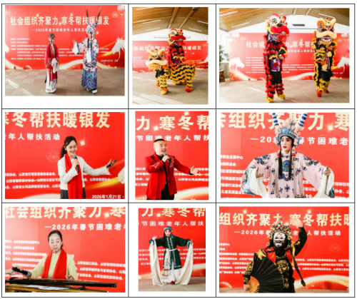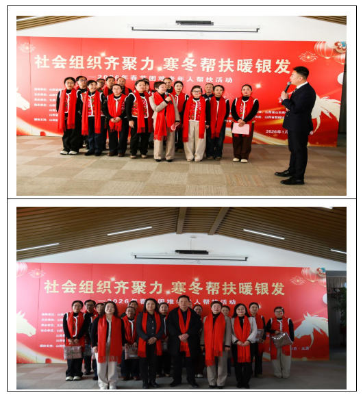 暖阳映桑榆,爱心暖寒冬。1月21日上午,由山西省社会组织总会主办、山西省老龄事业发展中心指导、山西省党建引领基层治理研究会等近20家社会组织协办,爱慕家城际养老院与华唐健康文化发展公司联合承办的“社会组织齐聚力 寒冬帮扶暖银发”——2026迎春爱心公益活动在太原市晋源区爱慕家城际养老院温馨举行。山西省委社会工作部政策法规处二级调研员韩蓓、省民政厅社会组织管理局原一级调研员、山西省社会组织综合党委委员冯慧夫、省民政厅养老服务处一级主任科员王云、省老龄事业发展中心安全监察科科长李伟、万柏林区义井街道办事处副主任杜涛、山西省社会组织总会副会长兼秘书长王美丽,近20家社会组织负责人及养老院百余位老年朋友齐聚一堂,以文化汇演、爱心致敬、幸运抽奖等形式,共赴一场尊老爱老的温情之约。