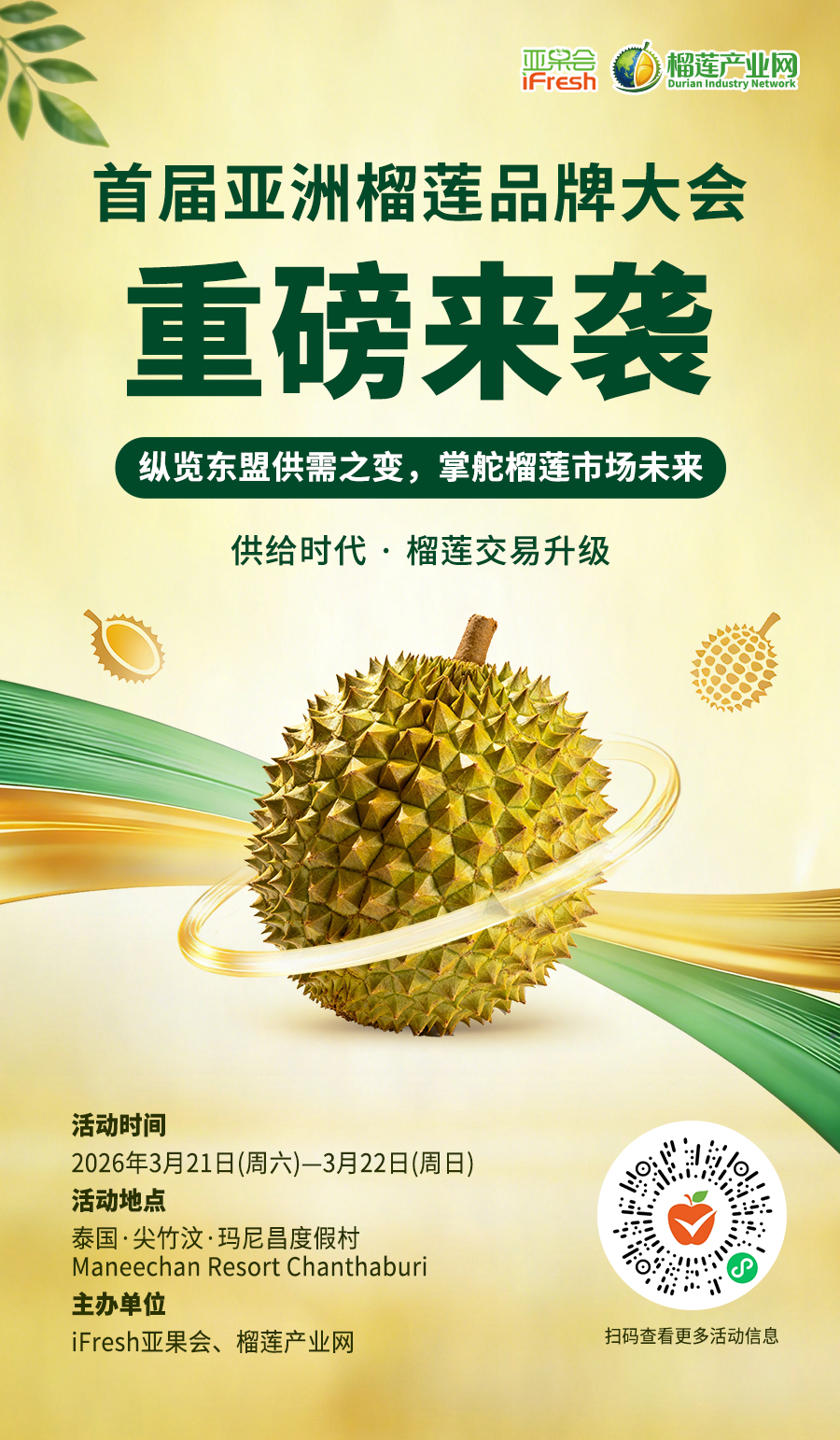 由 iFresh亚果会、榴莲产业网联合主办的首届亚洲榴莲品牌大会即将举办!