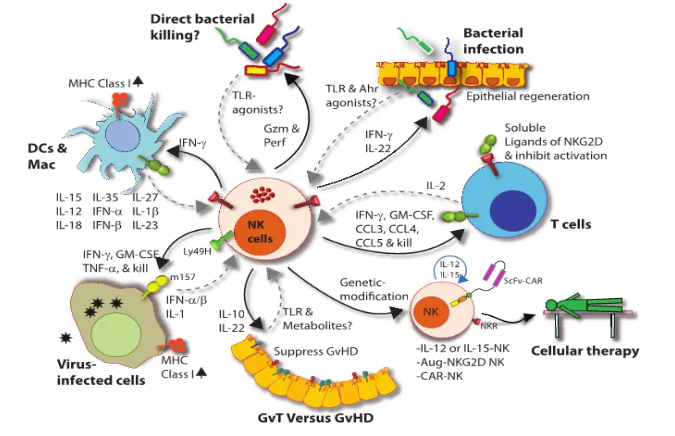 NK细胞是人体先天免疫的“第一道肿瘤监视防线”,无需致敏、不依赖MHC限制,可直接识别并清除癌变细胞。