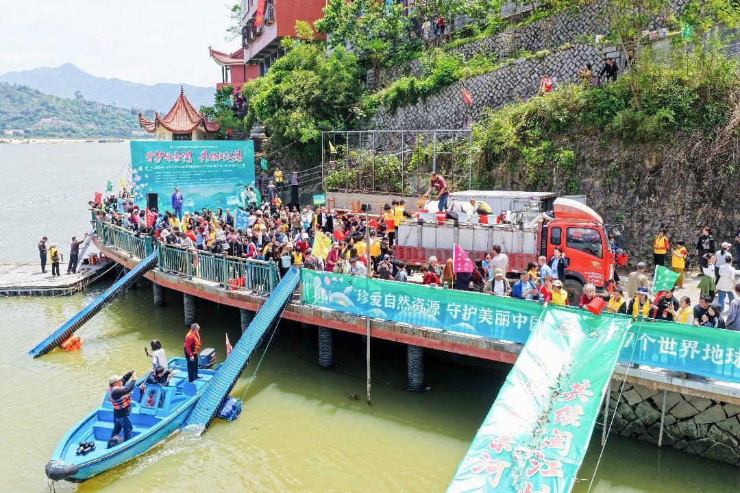 闽江水暖,万物竞生。为纪念第57个世界地球日,守护福建母亲河生态安全,4月25日,“守护母亲河 共续闽江情”——第五届海峡科学放生护生公益活动暨全国首批科学放鱼体验点启动仪式,在福州闽侯县闽江白沙江畔的金钟阁举行。本次活动标志着闽侯闽江白沙段科学放鱼点正式成为国家级示范平台,旨在推动科学放生理念普及,引导公众从“随意放生”转向“科学护生”,共筑闽江流域生态屏障。
